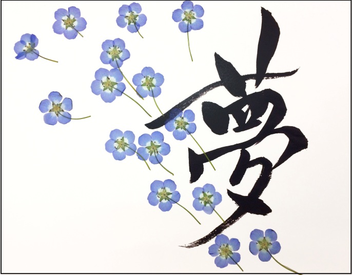 三越日本橋本店新館7階ギャラリー(東京)で開催の「杉野宣雄展〜押し花美の追求〜」にて、杉野先生の押し花芸術と私の書とのコラボ作品を出品していただきました。【2016年12月20日ー12月25日】